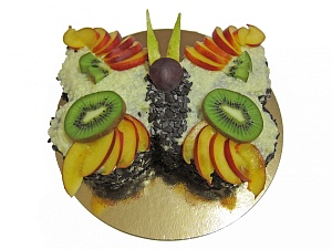 Для украшения подойдут любые фрукты: как свежие, так и консервированные. Выкладывайте любой узор — ведь каких только бабочек не существует на свете! Любуйтесь результатом и идите поздравлять прекрасных, как бабочки, женщин!