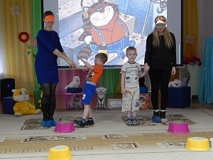 - «Кошка-поводырь». Детям в роли котят-поводырей предлагали довести до ориентира родителей, которым предварительно завязали глаза.