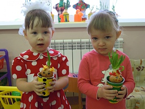 Воспитатель. Молодцы! Теперь возьмите луковицы и посадите их, чтобы у Чиполлино и Лукерьи появились новые друзья. Готово? Давайте наши стаканчики с луковицами поставим на подоконник, чтоб луковицам было светло и тепло от солнышка. А мы с вами будем наблюдать за ними. Теперь, после посадки нашего лука давайте помоем руки.