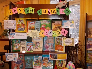 Книжная выставка «Сказки спящего города» объединила всех нас — маленьких читателей, родителей, библиотекарей и книги. Выставка получилась яркой, привлекательной. Её охранял Кот Баюн, сделанный руками наших же читателей. Ах, как полюбили наши взрослые и маленькие читатели книги с этой выставки!