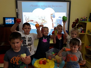 Воспитатель: Давайте поиграем в интересную игру. (Интерактивная игра: «Что любят наши зубки?».)