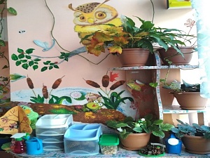Экологический уголок. Когда человечество начинает вырубать леса, засорять моря, океаны, реки, начинаешь задумываться, как приучить новое поколение к пониманию того, что мы должны беречь природу. Поэтому создание экологического уголка входило в план нашего проекта при планировании зонирования. Он находится рядом с окном, способствует расширению знаний о мире растений, воспитанию бережного отношения к природе, приобщению детей к уходу за растениями. Здесь мы наблюдаем за комнатными растениями, изучаем их многообразие, учимся за ними ухаживать с помощью спец оборудования: лейка, опрыскиватель, лопатки разрыхлять землю. Каждое утро начинается с того, что дети ухаживают за растениями.