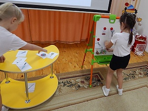 Ведущий: Это очень нужные предметы, но есть правила их использования. (Обсуждаем с детьми следующие правила: не брать нож за лезвие; ножницы передавать закрытыми, ручками вперёд; иглу после использования вставлять в игольницу или катушку, не оставлять её на столе.) Предлагаю поиграть в игру «Опасно-не опасно». (На мольберте с зелёным кругом дети закрепляют изображения неопасных предметов, а на мольберте с красным кругом – опасных. После игры проговариваем с детьми чистоговорки, в которых есть названия этих предметов.)