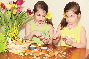 На Пасху принято есть куличи и крашеные яйца. Сейчас всё это в изобилии продаётся в магазинах, но насколько вкуснее то, что вместе с детьми мы приготовим сами. Кулич испеките вместе с ребёнком, а вот яйца дети вполне могут раскрасить сами. Не ограничивайте их фантазию!