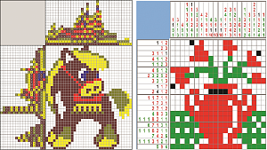 Вы познакомитесь с ещё одной головоломкой, обязанной своей популярности Японии – японским кроссвордом. В газетных киосках и книжных магазинах продаются самые различные сборники подобных кроссвордов, предназначенных как для взрослых, так и специально для детей.В японских кроссвордах, в отличие от традиционных кроссвордов, зашифрованы не слова, а изображения. Решить кроссворд – это значит восстановить зашифрованную картинку. Японские кроссворды бывают монохромные, выполненные одним цветом, и цветные. Для того чтобы научиться разгадывать эти головоломки, нужно сначала привыкнуть к их кодировке. Мы начнём наши занятия с головоломок, которые смогут разгадывать даже дошкольники, умеющие хоть немного считать.