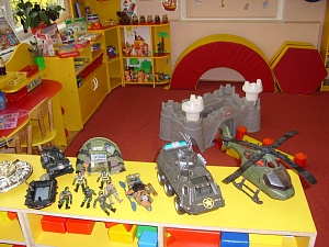 У девочек же выражено женское начало в виде потребности заботиться о ком-нибудь и опекать. Поэтому в игротеку девочек входят: кухня с различными вариантами кухонной утвари, парикмахерская, мебель для кукол, с полным набором постельного белья, трюмо, а также больница и магазин. Воспитатели и специалисты максимально разнообразили и дополнили игровую среду, ориентируясь на те предметы, которые они встречают у себя дома.