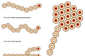Воспитатель предварительно, до того, как «Колечки» будут переданы детям, должен внимательно изучить методику, прочесть текст и самостоятельно «поиграть». Без этой предварительной работы эффективность воспитательного воздействия на детей через игру с набором «Колечки» существенно снизится. Воспитатель вправе и поэкспериментировать сам, тогда он лучше поймёт ребёнка, сможет ему в непринуждённой форме подсказать, что ещё можно сделать, чтобы разнообразить игру. Игра с набором «Колечки» не предусматривает применение готового образца для воспроизведения его детьми, если игра организуется как самостоятельная. Вместе с тем, воспитатель всегда должен быть способен предложить детям интересный вариант. Например, если дети выкладывают из колечек длинную змейку, можно оживить игру, положив в головное кольцо цветной шарик. Дети от простых действий выкладывания колечек на плоскости сразу перейдут в план игры режиссёрского типа, увидев на столе «змейку». В дальнейшем она может стать и Змеем-Горынычем или Царевной-лягушкой. Это будет означать, что участие воспитателя оказалось полезным, и дети получили мощный толчок в развитии своей фантазии, см. рисунки, вид сверху:Воспитатель не предлагает, что именно должен делать играющий ребёнок, но в процессе игры применяет метод проблемного общения с ребёнком, активизирующего игру. Воспитатель, таким образом, поощряет творческую активность ребёнка, осуществляет педагогическую поддержку развития его игровой деятельности. Автор выбрал для элемента оптимальную форму, размеры и их соотношения. Это значительно расширило функциональные и игровые возможности набора и обеспечило соответствия нормам безопасности: наружный диаметр равен 40 мм, а внутренний диаметр равен 20 мм, толщина 14 мм (форма – цилиндр снаружи и внутри элемента).