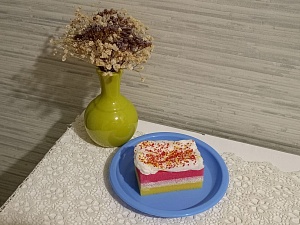 Наденьте фартуки и представьте себе, что вы – кондитеры-пекари. Сейчас, вместе со своим ребёнком, вы своими руками создадите шедевр – торт по собственному уникальному рецепту! Для изготовления аппетитного кусочка торта понадобиться совсем немного материала, который найдётся практически в каждом доме: губки разных цветов, бумажные салфетки, акриловые краски, кисточка, клей ПВА, бисер/бусинки, ножницы.
