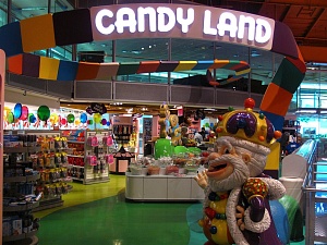 Ещё в этом детском магазине есть очень аппетитный отдел – «Конфетная страна» (Candy Land). Забавный гномик ростом с ребёнка стоит на входе в этот отдел магазина. Здесь очень много разных сладостей. В свою корзинку можно набирать всё что угодно, вперемежку из всех банок и со всех полок. Цена во всём отделе указана за фунт любого набора сладостей.