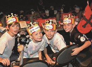 Наблюдая за рыцарским турниром, вы будете поглощать «королевский средневековый» обед. Имейте ввиду, что ни ложек, ни вилок вам не дадут и есть придётся руками. А томатный суп надо будет просто пить из «средневековой» миски. На обед, кроме томатного супа, вам подадут полкурицы, тёплый чесночный хлеб, целые картофелины, запечённые в травах и специях, приготовленные на углях свиные рёбрышки, кусок яблочного пирога. Впрочем, взрослые за отдельную плату могут заказать любые современные напитки.