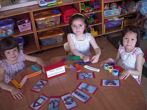 Игру «Умелые пальчики» я разместила в центре экспериментирования. Она подходит как для детей младшего, так и старшего возраста. Маленьким детям можно предложить готовые трафареты, по которым они будут ориентироваться и выкладывать различные предметы вокруг них. Старшие дошкольники уже самостоятельно создают свои картины на песке. Кому трудно – можно предложить фото-образцы.