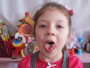 - Рот открыт, губы в улыбке, широкий кончик языка поднять за верхние зубы и многократно произнести «да-ды» — сначала медленно, затем постепенно убыстряя темп. Губы и нижняя челюсть неподвижны, работает только язык.