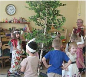- «Музыкальное воспитание». Дети учатся слышать в музыке эмоциональное состояние и передавать его движениями, жестами, мимикой, отмечают разнохарактерное содержание музыки, позволяющее более полно оценить и понять характер героя, его образ.