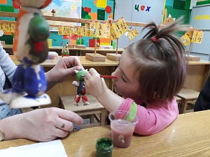Такое же волшебство ожидает посетителей дальше. Заходим в очередную комнатку – здесь уже готовы столы для самостоятельного творчества. На каждого посетителя – нераскрашенная игрушка (котик в «белье»), краски, кисточка, баночка с водой и салфетки. У кого получится самый добрый котик? А у кого самый смелый? Котики остаются каждому посетителю в качестве сувениров. Но для памятных приобретений при фабрике открыт магазин. Отсюда вы увезёте самые разнообразные изделия: от плетёных лаптей до вологодской птицы счастья. И, конечно, те самые игрушки в «белье», чтобы пораскрашивать дома.