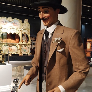 Сам механизм, приводящий автоматон в движение, в основном находился в постаменте и в единичных случаях в самой кукле. Редкое сочетание, когда куклы встраивали в музыкальные автоматы, и чтобы привести их в действие, нужно было закинуть монетку. На выставке представлен такой экспонат – дисковая музыкальная шкатулка «Stella», в которой расположился клоун с нереально живой мимикой и жестами, что начинаешь сомневаться, а кукла ли перед тобой?