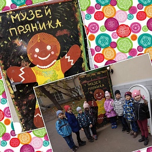 Походу в Музей Пряника предшествовала неделя «Город мастеров». Дошкольники знакомились с изделиями народных промыслов России (презентация «Город мастеров», музыкальный альбом «Народные промыслы России»), научились различать стили декоративной живописи, создали на бумаге один из элементов росписи – декоративный завиток. В музее ребята узнали полную историю любимого лакомства россиян, познакомились с методиками изготовления пряничных шедевров, оценили работы взрослых мастеров, создавших целую сказку, выполненную из теста, мёда и патоки. Дети увидели пряничную Бабу-Ягу в её избушке, огнедышащего Змея Горыныча и других сказочных персонажей. Ребята с удовольствием ответили на вопросы Олимпиады, а в заключении каждый участник расписал пряничную матрёшку своим неповторимым узором.