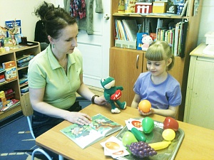 Нам потребуются игрушки — кот, собака, лягушка, гусь, петух, зайцы; муляжи фруктов и овощей; предметные картинки ягод; разрезная картинка с изображением овощей.