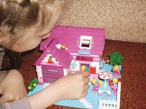 К двум годам дети начинали копировать наши действия и вносить их в игру с Лего — строить дорожку и ходить по ней с куклой, ходить за покупками в домик, который построила мама, устраивать чаепития за столом из Лего или водить автобус, собранный старшим братом. Постепенно на смену складыванию кубиков пришло творческое конструирование. Купив тематические наборы «Ферма», «Животные», «Пикник», мы могли придумывать истории, сказки, рассказывать ребёнку о том, где живут зверушки и чем питаются.