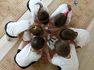 Ведущий: Молодцы, ребята, вы отлично справились со всеми заданиями и пока судьи подводят итоги, предлагаю поиграть в подвижную игру «Соберись в кружок». (Дети под музыку бегают по залу врассыпную. По окончанию музыки воспитатель поднимает карточку с цифрой. Дети должны собраться в кружок по столько человек, какая цифра изображена на карточке.)