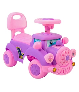 На прошлый Новый год, когда нашей малышке было всего 9 месяцев, бабушка и дедушка подарили внучке машинку-толокар. Она была куплена в местном магазине игрушек. Эта модель привлекла именно сугубо девчачьим дизайном в розово-сиреневых тонах. Производитель не был указан, так как никакой упаковки не было.