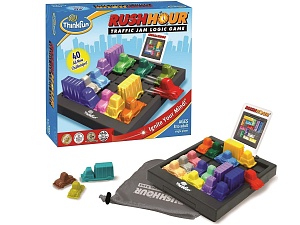 В комплект игры-головоломки «Час пик» входят: 1 красная машина, 15 блокирующих машин различных цветов и размеров, игровое поле, мешочек для хранения игровых принадлежностей, 40 карточек-заданий 4-х уровней сложности на английском языке с решениями на обороте и карточка-инструкция. Все игровые принадлежности упакованы в коробку.