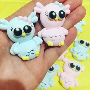 Масса моментально схватывается, поэтому нужно работать очень быстро. Деталь за деталью отсаживаем нужную фигурку или мордашку, оставляя между ними время на стабилизацию. Затем прорисовываем кисточкой эмоции у мордашки, припудриваем кукурузным крахмалом, тщательно «оттряхиваем» мягкой кисточкой. А потом наступает время для многочасовой сушки.