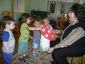 Демонстрационный материал: игрушка мишка, корзиночка, раскрывающийся гриб из папье-маше.