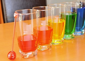 Выстройте в ряд несколько прозрачных бокалов. Заполните их водой до разного уровня: по возрастающей от полупустого до полного. Для большего веселья сделайте воду разноцветной, используя обычные краски или пищевой краситель. Если провести ложкой по краю бокала – он издаст звук определённой высоты. У соседнего бокала звук будет иным. Попробуйте наиграть на этом инструменте знакомую мелодию.