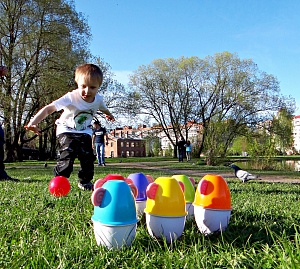 Наверное, все взрослые умеют играть в боулинг, а значит научить этой игре своих детей под силу каждому. Ничего сложно в этой игре нет. Нужно расставить кегли, отойти на необходимое расстояние и кинуть мяч, при этом стараясь сбить как можно больше кеглей. Но, как вы понимаете, каждый ребёнок играет по своим правилам. Моему сыну больше понравилось пинать мячик ногами, а ведь сила удара при этом намного больше. Сначала я боялась, что кегли от таких столкновений могут треснуть или сломаться. Оказалось, что я переживала зря!