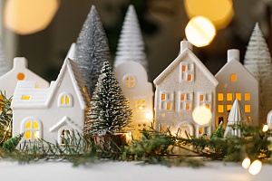 Создать собственный маленький мир – кропотливый, но весьма увлекательный процесс. Постройте из картона город с домами и магазинами, в нём можно проложить дороги и рельсы. Украсьте окошки и дверцы домов. Конструкцию можно покрасить белой краской, создавая эффект заснеженности, или оставить неокрашенным, но подсветить гирляндами жёлтого или тёплого белого цвета. Город можно установить на полку, подоконник или прямо под ёлку. Глядя на такой город, возникают мысли, что мир может быть светлым, добрым и безопасным.