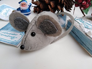 Так как следующий год – год крысы, то именно её фигурку из фетра мы и сделаем! Для изготовления игрушки нам понадобятся материалы: лист белой бумаги, карандаш, фетр серого цвета, фетр тёмно-серого цвета, вата или другой наполнитель, чёрные бусинки для глаз и для носа, нитки серого цвета, иголка, ножницы, тонкая медная проволока (по желанию), горячий клей. С иголкой нужно быть осторожнее и обязательно работать под присмотром родителей!