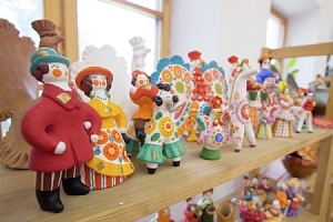 Дымковская игрушка – русский народный глиняный художественный промысел, возникший в заречной слободе Дымково около города Вятки (ныне – Киров). Все игрушки – эксклюзивные изделия ручной работы. Над каждым трудится один мастер, поэтому невозможно найти две абсолютно одинаковые игрушки. Для их создания берётся глина, смешанная с речным песком, а в оформлении используются яркие краски. Традиционные образы дымковских игрушек – барыня, скоморохи, няньки с детьми, дикие и домашние животные.