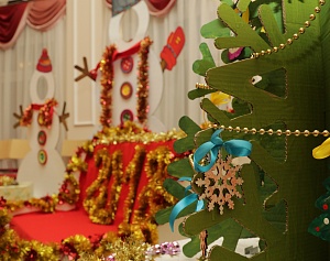 В нашем детском саду подготовка к новогоднему празднику включает комплекс познавательных и интересных для детей мероприятий, среди которых викторина «Новый год и Рождество» для старших дошкольников и их родителей; занятие «Раскрась ёлочку», театрализованная деятельность «Пряничный человечек» на английском языке и мастер-класс «Имбирное печенье» для детей подготовительной группы; мастер-класс «Роспись ёлочных игрушек» для родителей. Вся указанная выше деятельность дошкольников и взрослых организована педагогами таким образом, что дополняет содержание разных образовательных и развлекательных событий, а также связывает их между собой. Например, дети под руководством педагогов раскрашивали ростовые ёлочки из картона и затем украсили этими ёлочками актовый зал. По результатам участия в викторине каждый родитель получил деревянную заготовку ёлочной игрушки, и взрослым был предложен мастер-класс «Роспись ёлочных игрушек». Дошкольники участвовали в мастер-классе «Имбирное печенье», во время которого они ещё раз вспомнили о главном герое спектакля «Пряничный человечек».