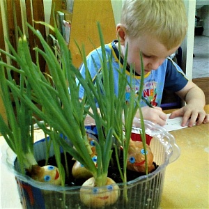 У детей же свои задачи, чётко сформулированные, в данном случае, руководителем проекта воспитателем Куличковой Т.Н.: получить информацию о назначении космического корабля и его внутреннем устройстве; нарисовать космический корабль с учётом представлений о функциональном назначении его частей; обосновать конструкцию корабля при обсуждении; участвовать в разработке схемы космического корабля, по которой в дальнейшем будет выполнен макет, и в его коллективном изображении, в выполнении объёмной модели корабля в совместной со взрослыми деятельности. В ходе проектов, связанных с практической деятельностью по выращиванию растений, к примеру, лука, дошкольники также будут решать свои задачи: знакомиться со строением луковицы; изучать возможность выращивания лука на перо в домашних условиях; экспериментальным путём определять необходимые для роста растения условия и наилучший способ выращивания зелёных луковых перьев; самостоятельно или коллективно создавать оптимальные условия для выращивания лука в зимнее время.