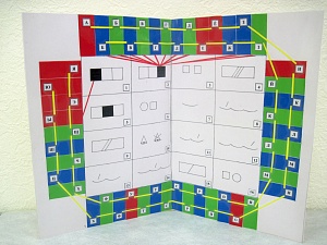 Игроки двух команд по очереди называют свой звук (букву + цвет) и выбирают любую из 16-ти карточек-заданий. Находят своё задание по номеру и отвечают. За правильный ответ игрок (команда) получает фишку, которой закрывает звук (букву). За ошибочный ответ фишка остаётся у ведущего, который следит за правильностью выполнения заданий. Побеждает тот игрок (команда), который ответит на свои вопросы без ошибок или с наименьшим количеством ошибок и закроет свои звуки (буквы) фишками.