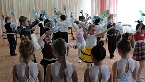 Игра «Танцующие прищепки». Взрослый надевает плащ, сшитый из одноразовых скатертей жёлтого цвета, на которые хаотично прикреплены прищепки. Дети пытаются снять прищепки с танцующего взрослого.