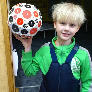 Обычные игральные кости – пара кубиков с точками на гранях. На наших многогранниках вместо точек – цифры. Сумма чисел на противоположных гранях октаэдра равна 9, додекаэдра – 13, икосаэдра – 21. Чтобы обратить внимание детей на эту особенность игральных костей, проделаем такие упражнения: