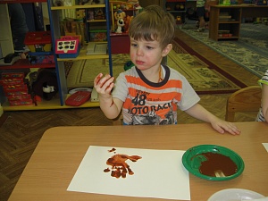 Воспитатель: Покажите свои ладошки. Потрите ладошку друг о дружку, погладьте свои ладошки, похлопайте ими. Вот сколько дел умеют делать наши ладошки. А ещё они умеют рисовать.