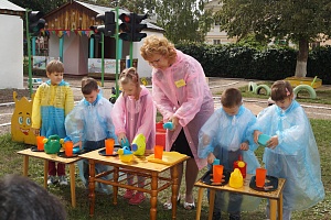 - продемонстрировать все свойства воды, рассказать о видах дождя, а также о составе песка, его свойствах.