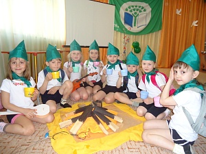 Воспитатель: Ребята, мы всё убрали, помогли Сибирячку, теперь можно отдохнуть и попить чай. (Дети достают из рюкзака термос, стаканы и наливают чай. Проводится беседа о правилах поведения в лесу.) А сейчас давайте посмотрим на нашу карту. Куда же она нас ведёт? (Слышен гудок корабля.)