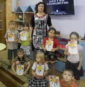 Воспитатель: Вот и закончились наши удивительные приключения! Какое желание Жени вам больше понравилось. Почему? (Ответы детей.) Что помогло вам преодолеть все трудности и выполнить все задания? (Ответы детей.) Верно, и, конечно, ваша доброта! А хотите себе такой цветок? Что бы вы пожелали у такого цветка? Подумайте, а потом мне скажите. Давайте сделаем и мы с вами цветики-семицветики и подарим друг другу, чтоб ваши мечты сбылись (дети собирают цветочки из приготовленных воспитателем деталей).
