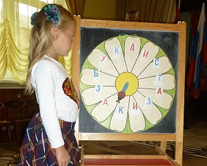 Логопед: Молодцы, ребята! На «Ромашке» по кругу расположены буквы. Получится ли составить из них слова? Что подскажет нам волшебная книга? (Ребёнок открывает книгу.) Есть подсказка: последняя буква первого слова – это первая буква следующего слова. (Дети составляют слова азбука, аист, тазик.)