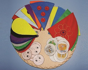 - «Времена года» — четыре двусторонних «ломтика» пиццы разных цветов (синий, зелёный, красный, жёлтый) с вышитым символом времени года с одной стороны, 12 переведённых на фетр картинок с изображением признаков времени года.