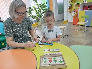 С помощью игры дети учатся: выкладывать по цвету; по форме; разделять элементы игры на овощи, фрукты и ягоды; считать количество предметов на каждой ступени.