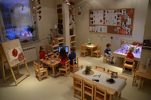 - Ребёнку предоставляется свобода в постижении окружающего мира и выражении собственных идей. Дети изучают живопись, музыку и танец, познают законы окружающего мира и развивают конструкторские навыки. Приветствуется свободное использование в работе над проектами разнообразных природных и бытовых материалов. Результаты проектов по завершению обязательно подвешиваются к потолку, ставятся на полки, крепятся на стенах – одним словом, демонстрируются.