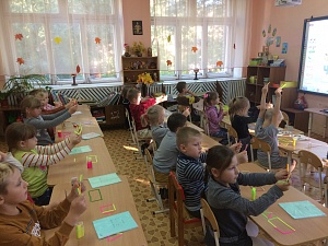 Дети: Башмачки лягушатам большие и будут спадать. Лягушатам будет неудобно прыгать. У лягушат тоже по 4 лапы. Башмачков меньше, чем лап. (Педагог проводит с дошкольниками двигательную паузу «Мы топаем и хлопаем».)