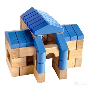 Сделаны они из экологически чистого, и в то же время, ударопрочного материала – бука. Одна часть деталей представляет собой небольшие геометрические фигуры, вторая – это специальные соединяющие штифты, с помощью которых детали надёжно крепятся друг к другу. Теперь постройки не разрушатся от неловких детских движений. На радость, юным строителям, они станут долговечными. Их можно собирать по предложенным схемам или изобретать свои собственные модели. Чем больше наборов – тем интересней играть!