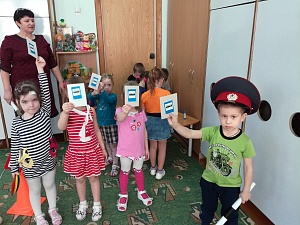 Воспитатель: Здравствуйте! Это инспектор ГИБДД. Вы знаете, что такое ГИБДД? Это государственная инспекция по безопасности дорожного движения. Расскажите нам, пожалуйста, о дорожных знаках.