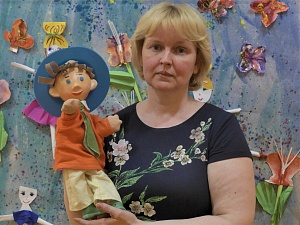 Воспитатель (удивлённо): Что это ещё такое? Это кто здесь так хохочет? (Проходит по залу и обнаруживает Незнайку – куклу БИ-БА-БО, надевает её на руку и выходит в центр зала.) Ой, ребята, тише, тише, чьи-то здесь шаги я слышу. Догадайтесь, детвора, кто же к нам идёт сюда?