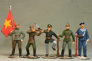 У массовых отечественных солдатиков довольно короткая история, около ста лет – до революции отечественных производств практически не было. Солдатиков в те времена русские кустари создавали из дерева, а оловянных поставляли из-за границы (Германии и Австро-Венгрии), и доступны они были только знати. Выпускали бумажных солдатиков, с которыми, как доподлинно известно, играл даже маленький Володя Ульянов… При Советской власти в первых солдатиках проявились идеологические мотивы. Изображался враг, он был узнаваем – например, колчаковский офицер, расстреливающий крестьян, или пузатый буржуй в цилиндре. Это были поделки кустарей и маленьких частных артелей, государство же занималось сначала преодолением разрухи, а затем индустриализацией страны – было не до игрушек.